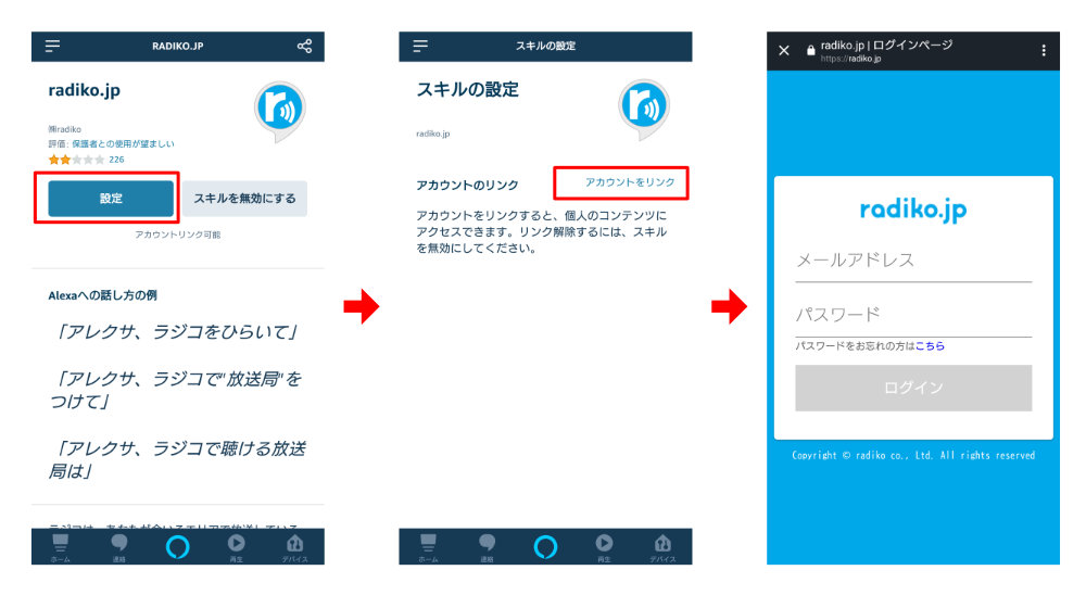 「設定」ボタンを押せばAmazon Alexaでrajikoを使ってラジオを聴くことが出来るようになります。