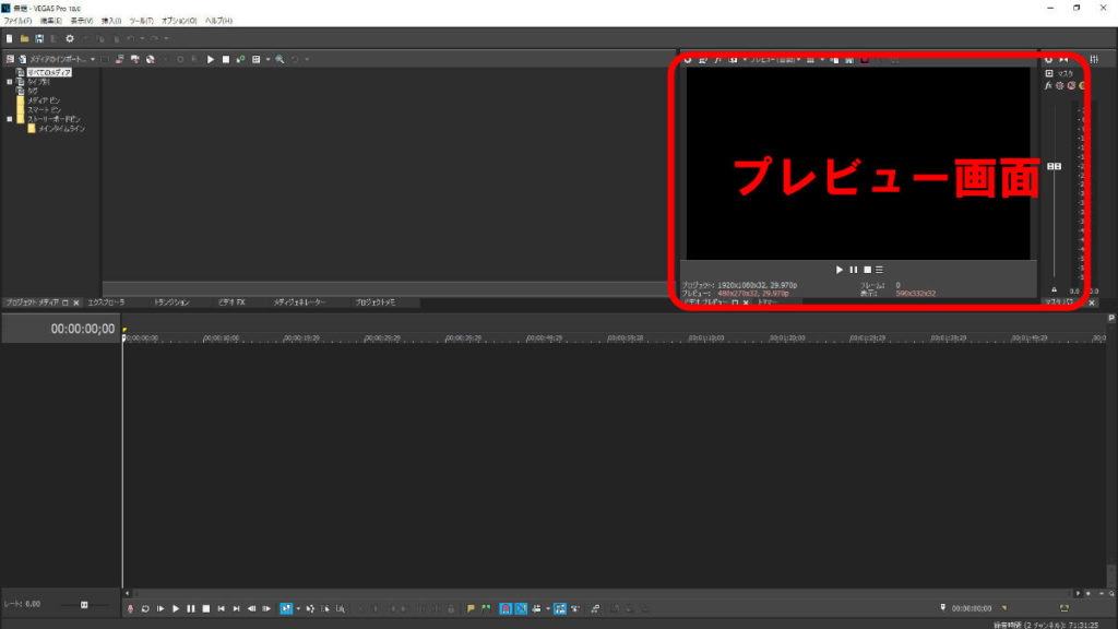 ここではVEGAS Proの編集画面の意味を最低限理解し、簡単な動画を制作して書き出すところまで説明します。