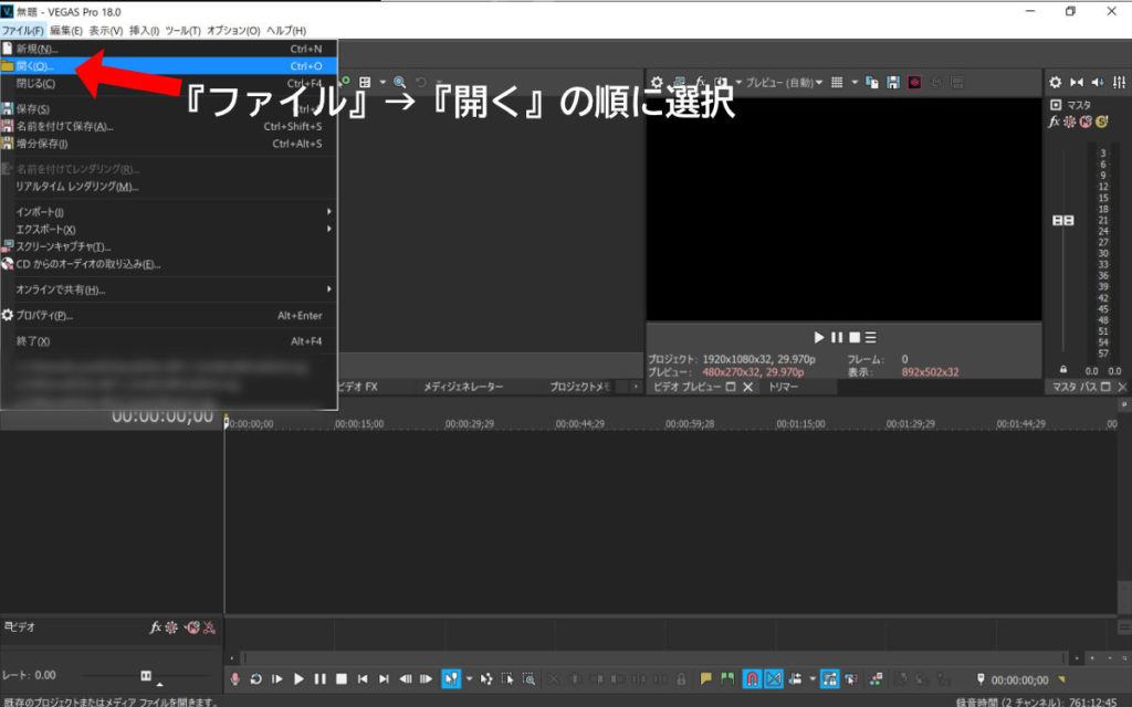 素材の準備ができたらVEGAS Proを起動します。
