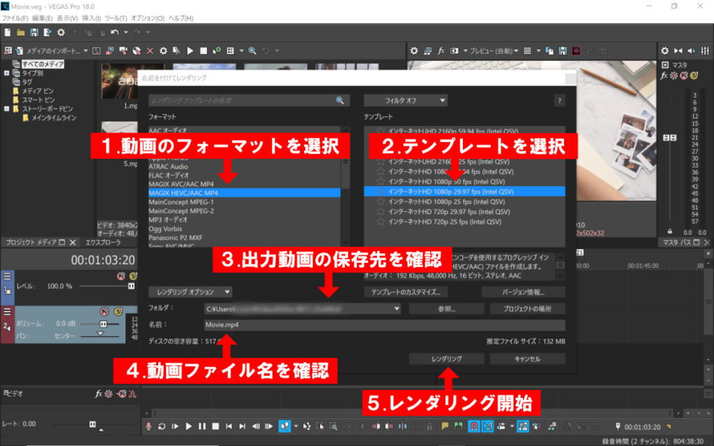 これがVEGAS Proでの動画制作の一連の流れです。