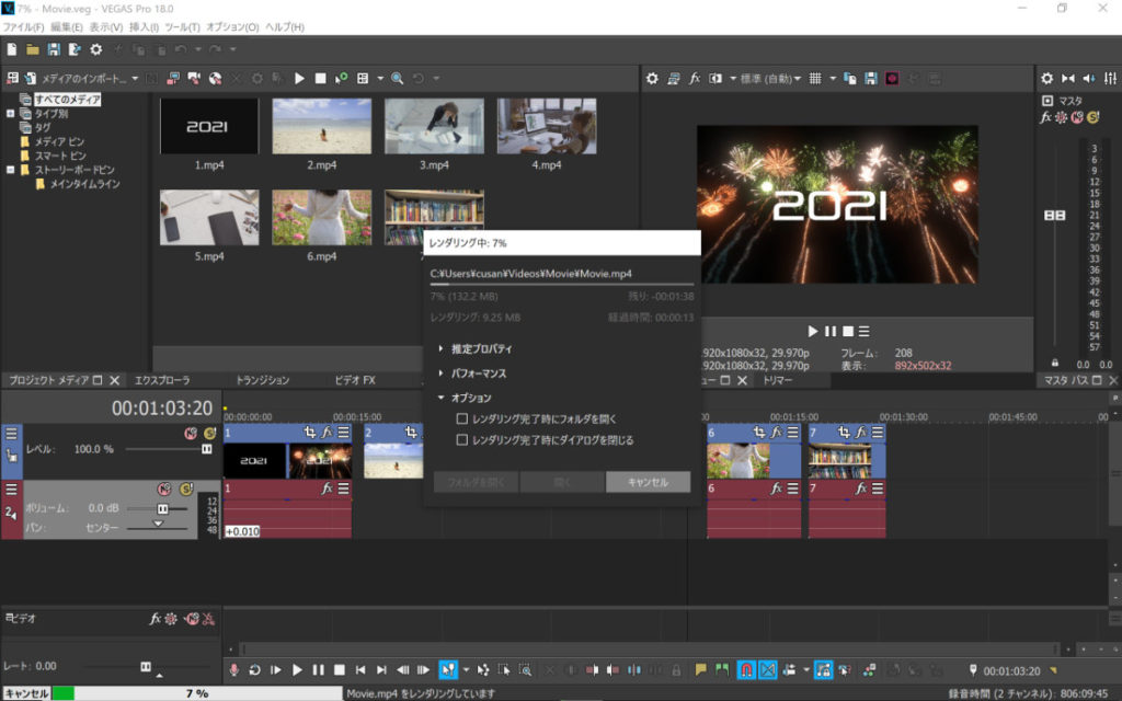 動画のレンダリング(書き出し)作業が開始されます。